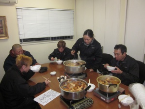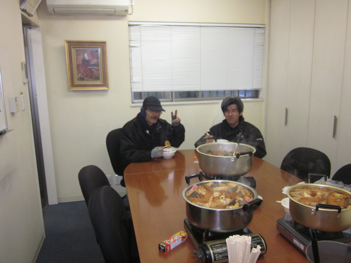 去る、2月25日に、運転手さんへの労いをこめて、帰庫後、おでんの振る舞いを行いました。寒空の中、業務を終えた運転手さんたちは、大量に用意したおでんに舌鼓をうっていました。大きな鍋、約5杯分用意したおでんは、みるみるうちに減っていき、見事完売!みんなの食べっぷりには驚かされました。ほんのひと時ではありましたが、優雅に過ごせたのではないでしょうか?