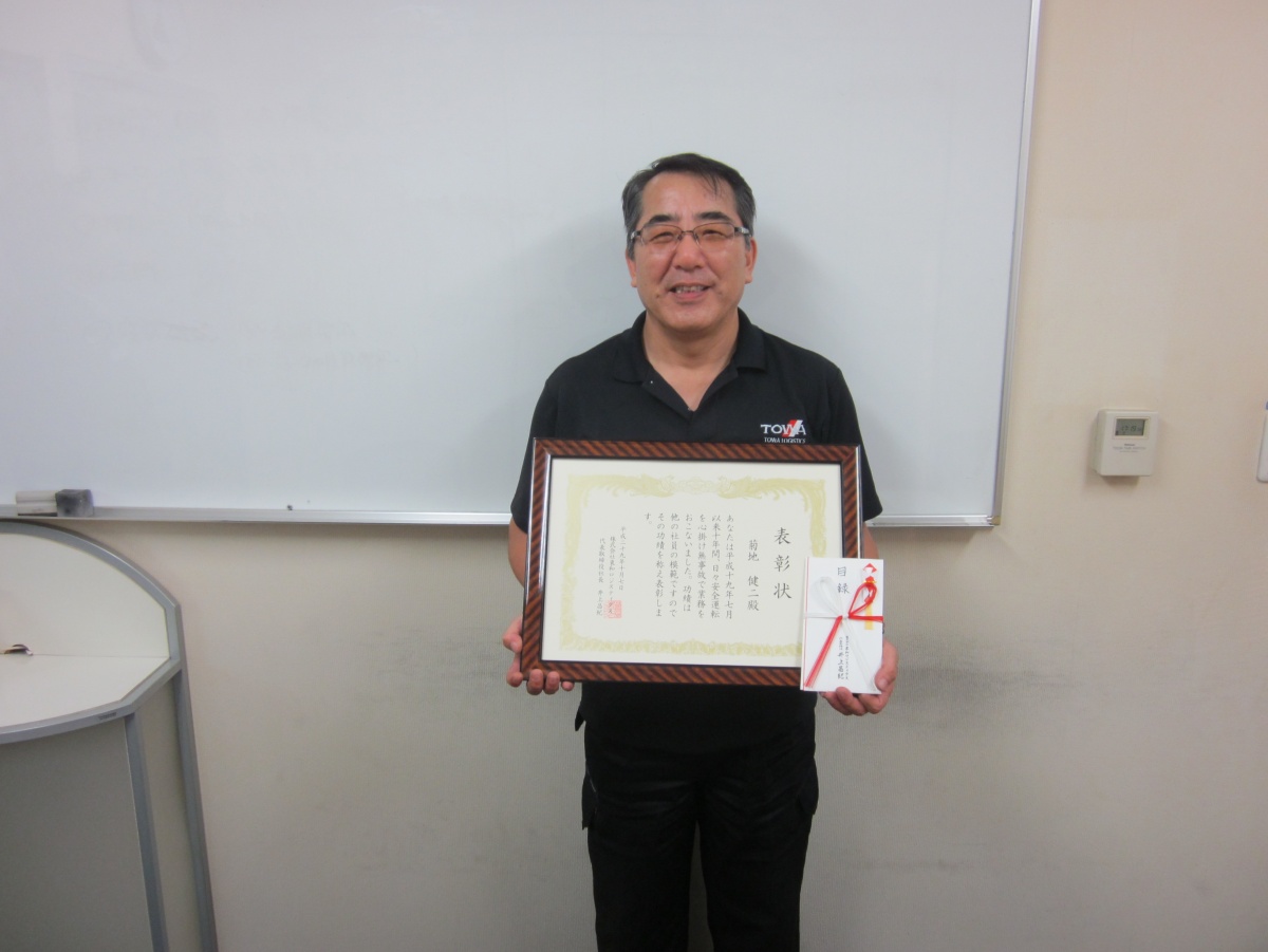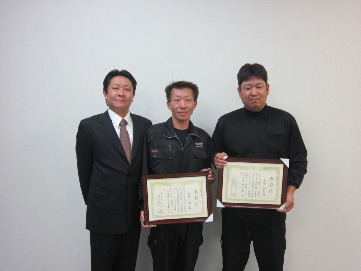 近年、従業員、協力会社の方々多数の参加を頂きありがたく感じると共に心よりお礼申し上げます。今回は、10年無事故記録者1名、5年無事故記録者2名の表彰をしました。講習会を開催する度に、表彰者が出るのは大変喜ばしい事です!