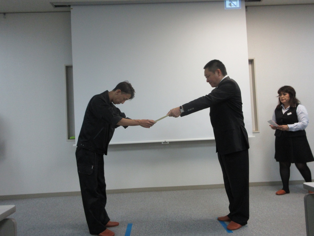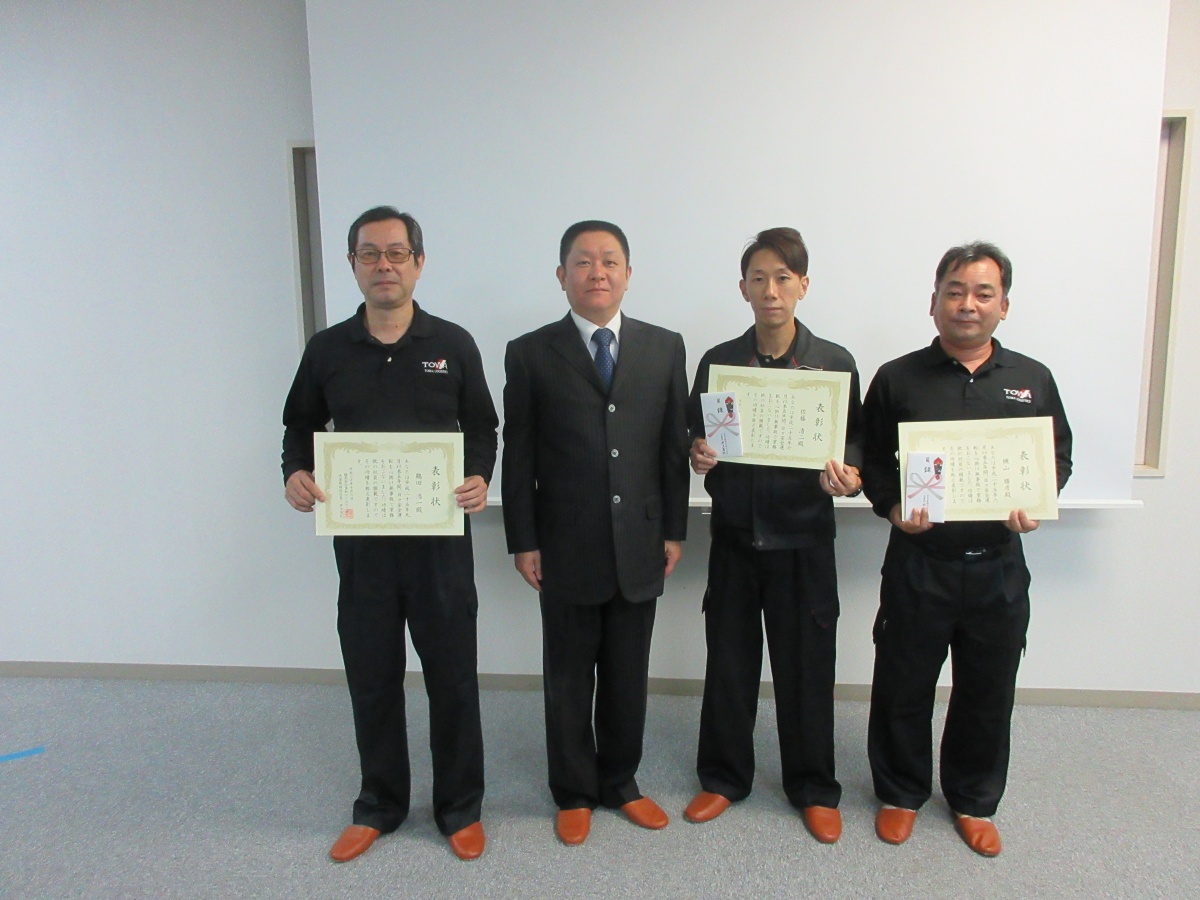 クイズで頭の体操をして脳の活性化もして、協力会から事故件数、無事故者表彰をしました。