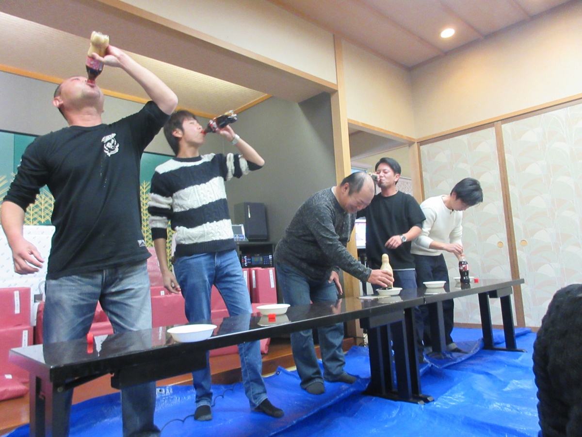 コーラ早飲み、ジェスチャーゲーム、ビンゴゲームで大いに盛り上がり、結束力もさらに