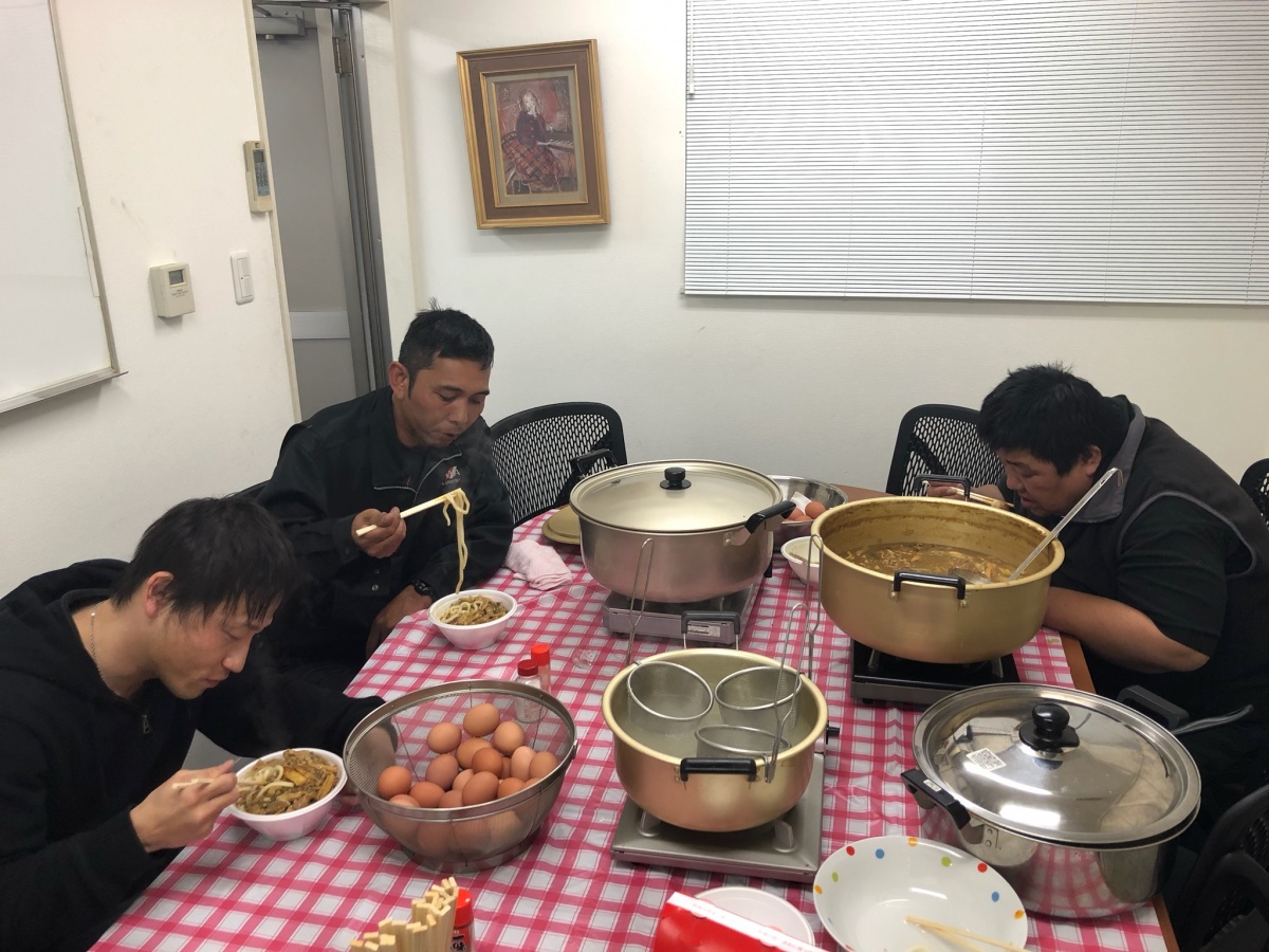 カレーうどんを食べながら皆さんから、「ごはんもほしい」と何杯もおかわりしていただき