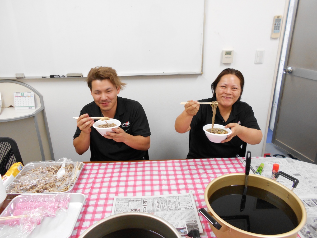 お仕事終えて、無事に帰社して、ホッとして蕎麦を食べる顔、何とも言えません。