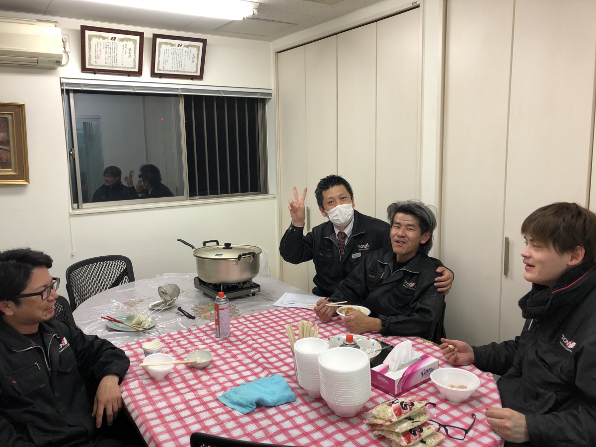 この日は雨降りでとても寒い一日、帰社する社員も寒そうで、その中でけんちん汁を食べて、