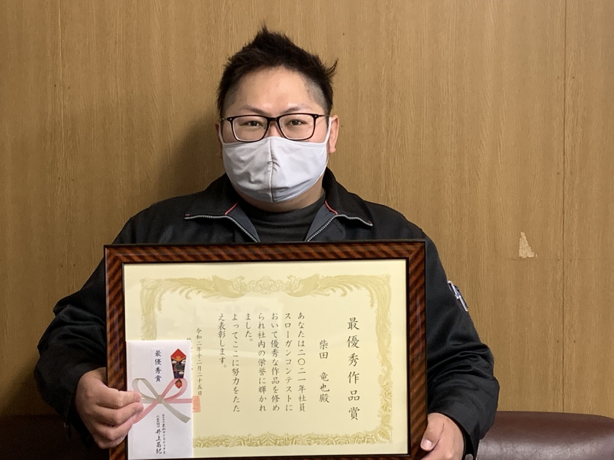 見事、最優秀作品に選ばれた柴田竜也さん、おめでとうございます!柴田さんは入社12年余りのベテランドライバーです。自身に対する戒めの意味においても、それにふさわしいスローガンだと思います。
