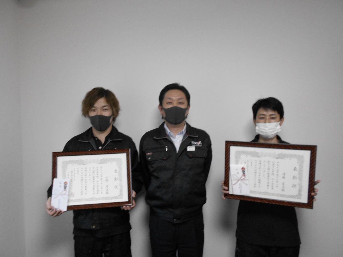 4月12日㈪、当社応接室にて無事故継続者の表彰を行いました。