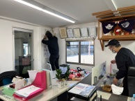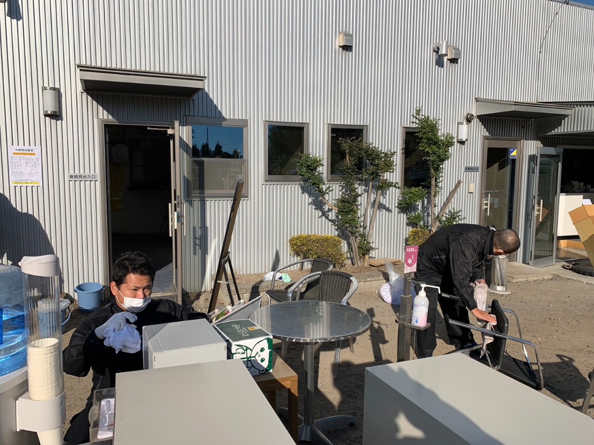 事務所、駐車場、休憩室、倉庫など清掃中に沢山の声が行き交う中、一人ひとりが担当の場所を心を込めて清掃してくれました。