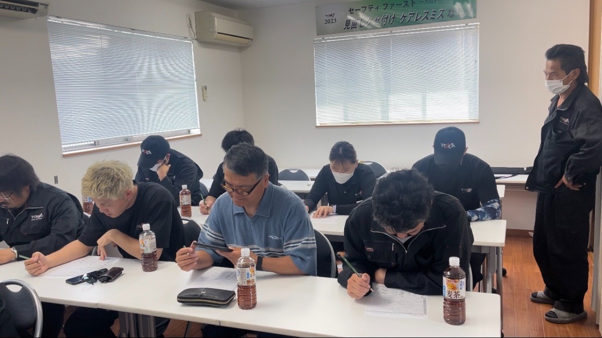 今回の講習では、入社1年未満の新人ドライバーさん達が、実際に起こしてしまった事故事例を紹介し、その事例についての原因や対策を全員で議論しました。