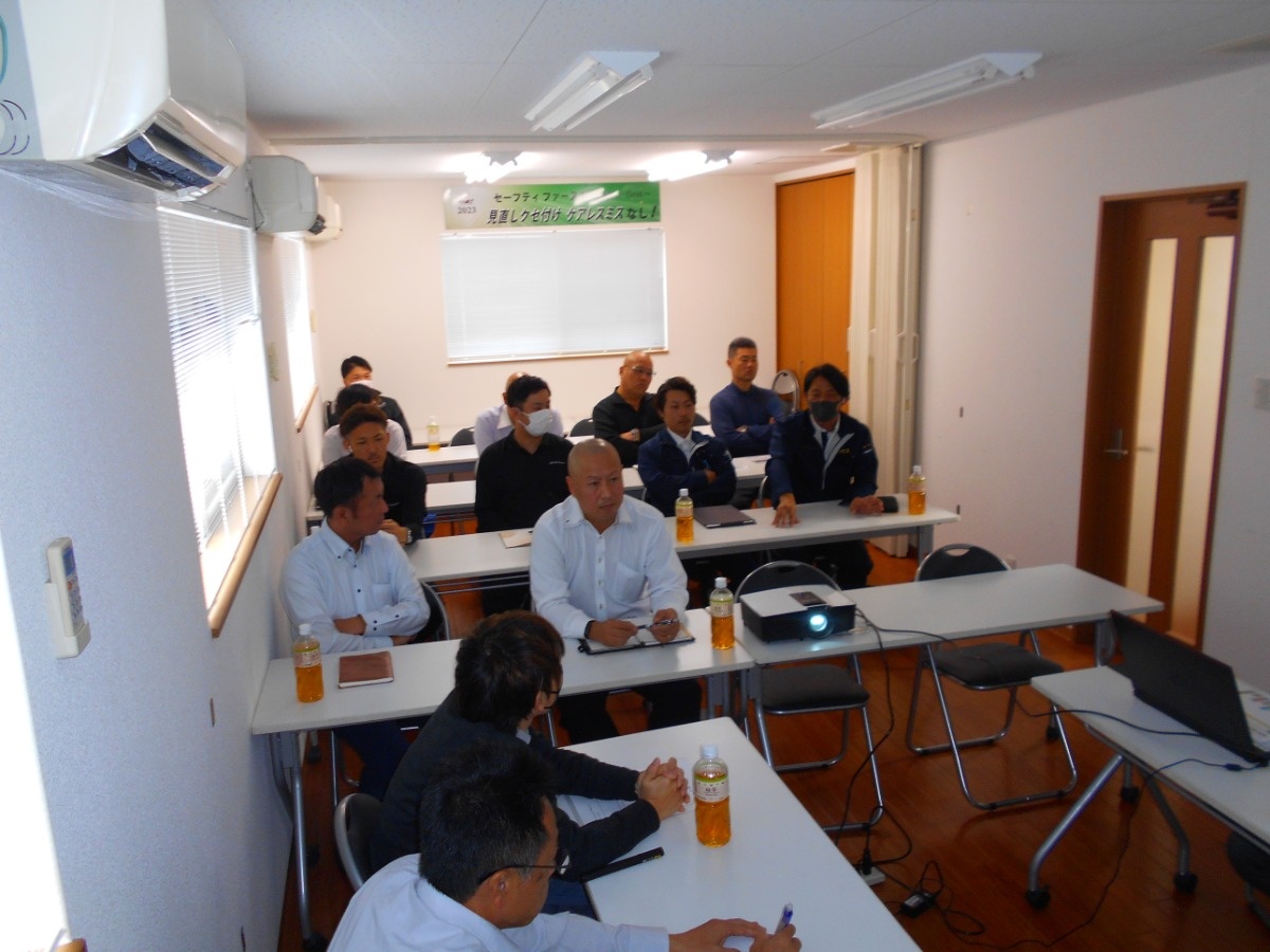 前半では、今年発生した事故件数や、実際発生した事故事例を展開し、協力会社の方たちに周知して頂きました。今年は昨年と比較して、事故件数は減少しておりますが、少しでも0に近づけるよう、共に協力していきましょう!