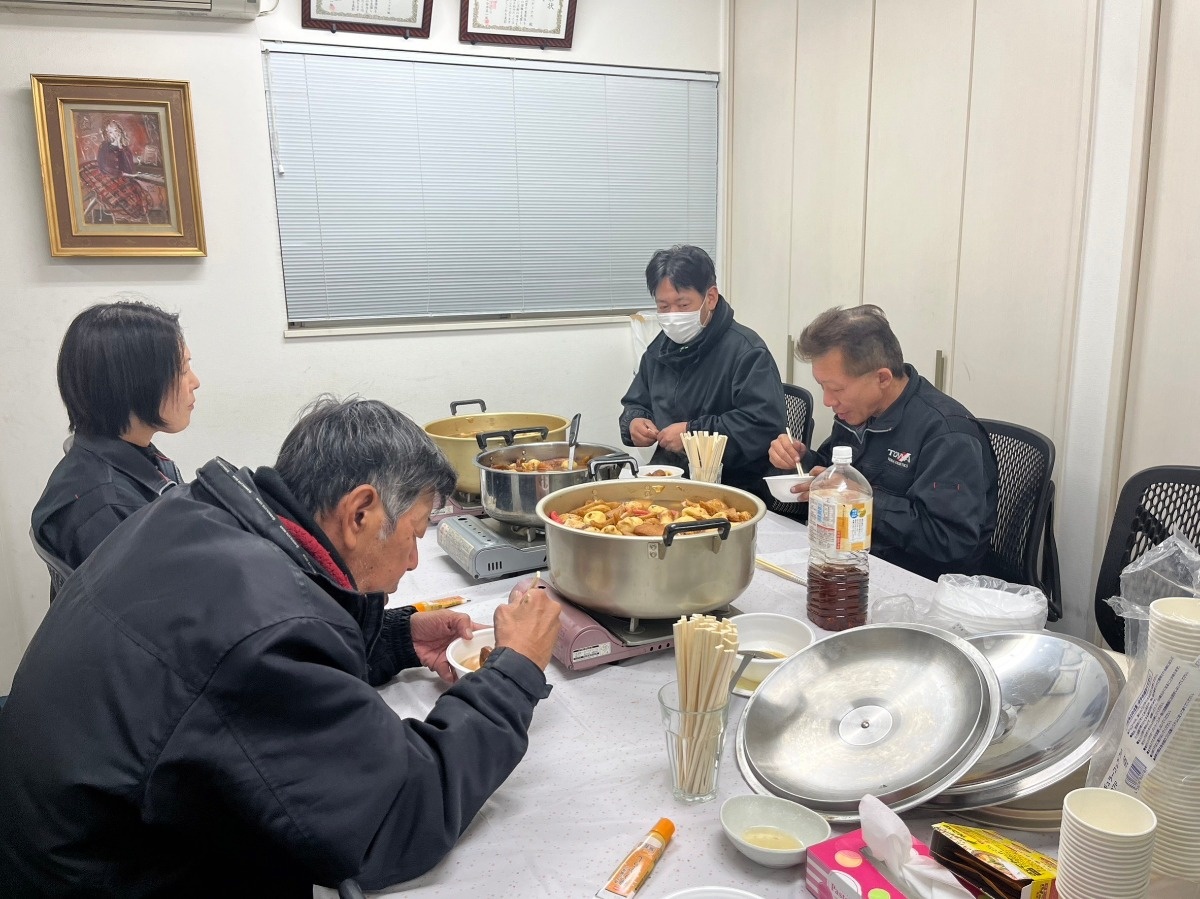 当社もおかげ様で今年入社した乗務員が11名。お鍋にたっぷり入っている具材を見て、迷いながら、笑いながら、楽しんで召し上がっていました。