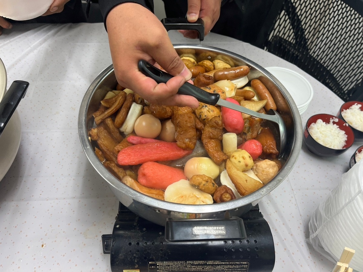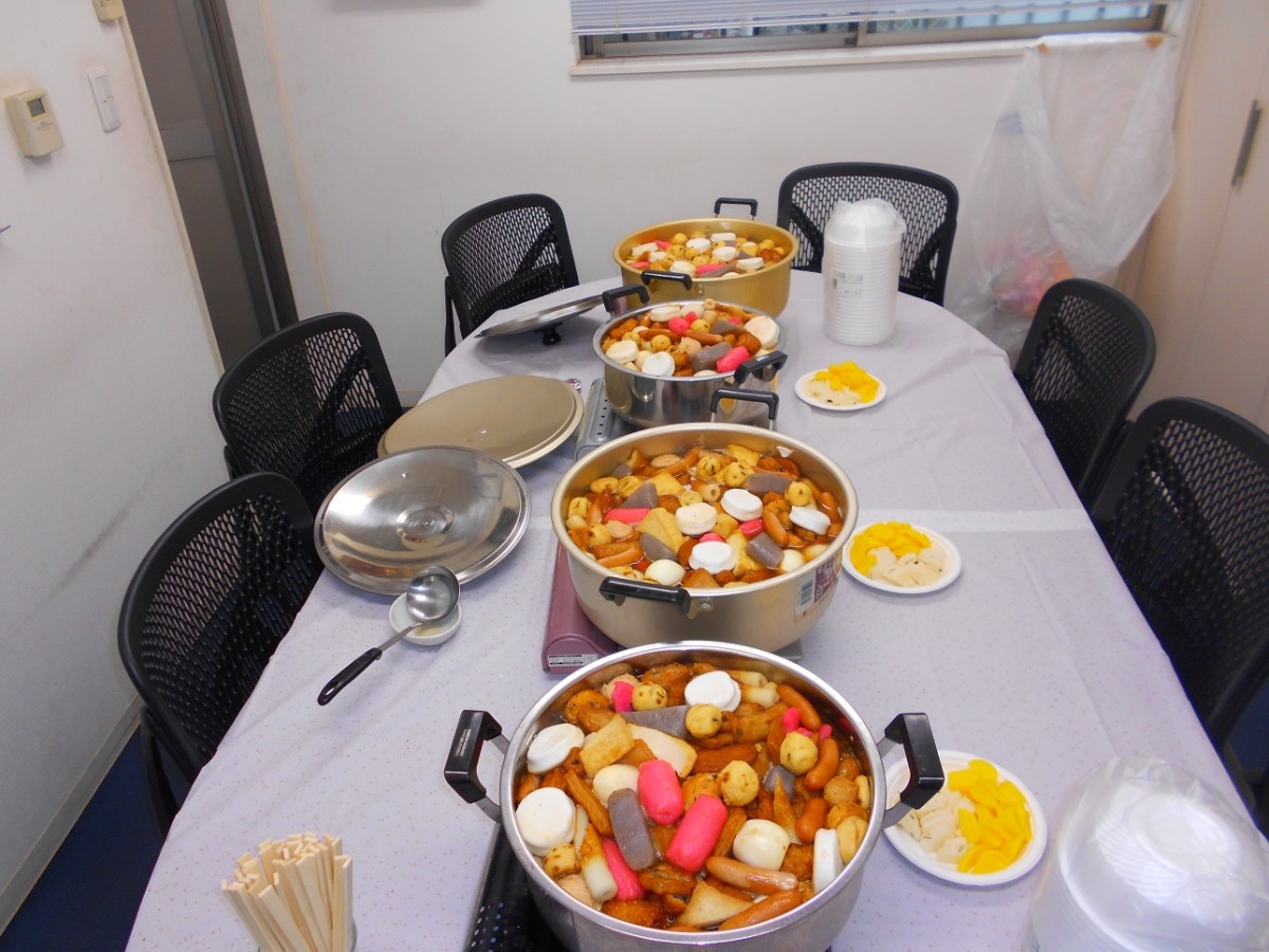 今回は【おでん】を用意しました。朝の出勤時、前日の帰庫時などに乗務員から「○○が食べたい!」「牛すじはあるの?」などの意見もあり、準備をしてくれた事務員さんは、「OK!」「牛すじはないけど、味には自信があるよ!」と笑みを浮かべながら、話していました。