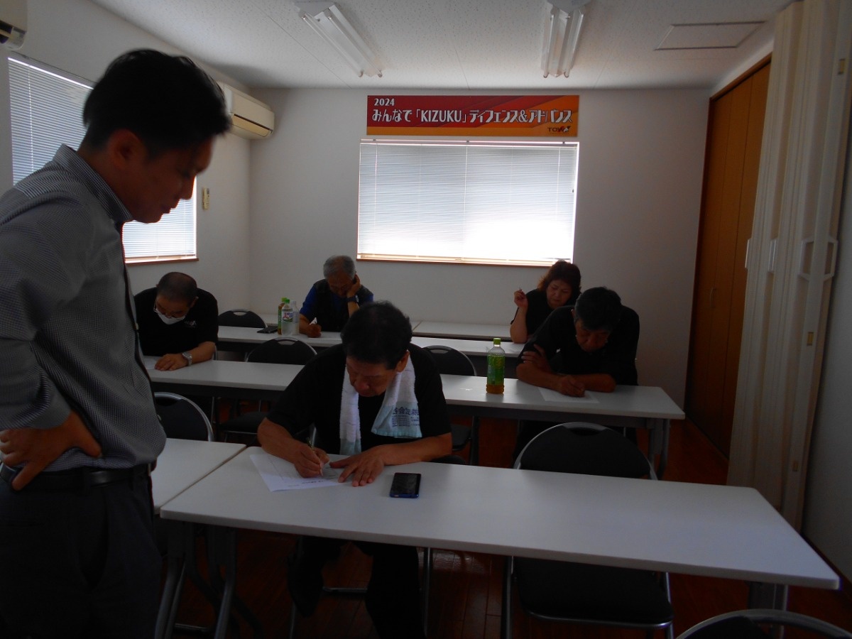 後半では、交通ルールの再確認をしました。走行中のスマホ等の使用、一方通行の逆走、横断歩道の歩行者妨害等のルール順守の再徹底をお願いしました。
