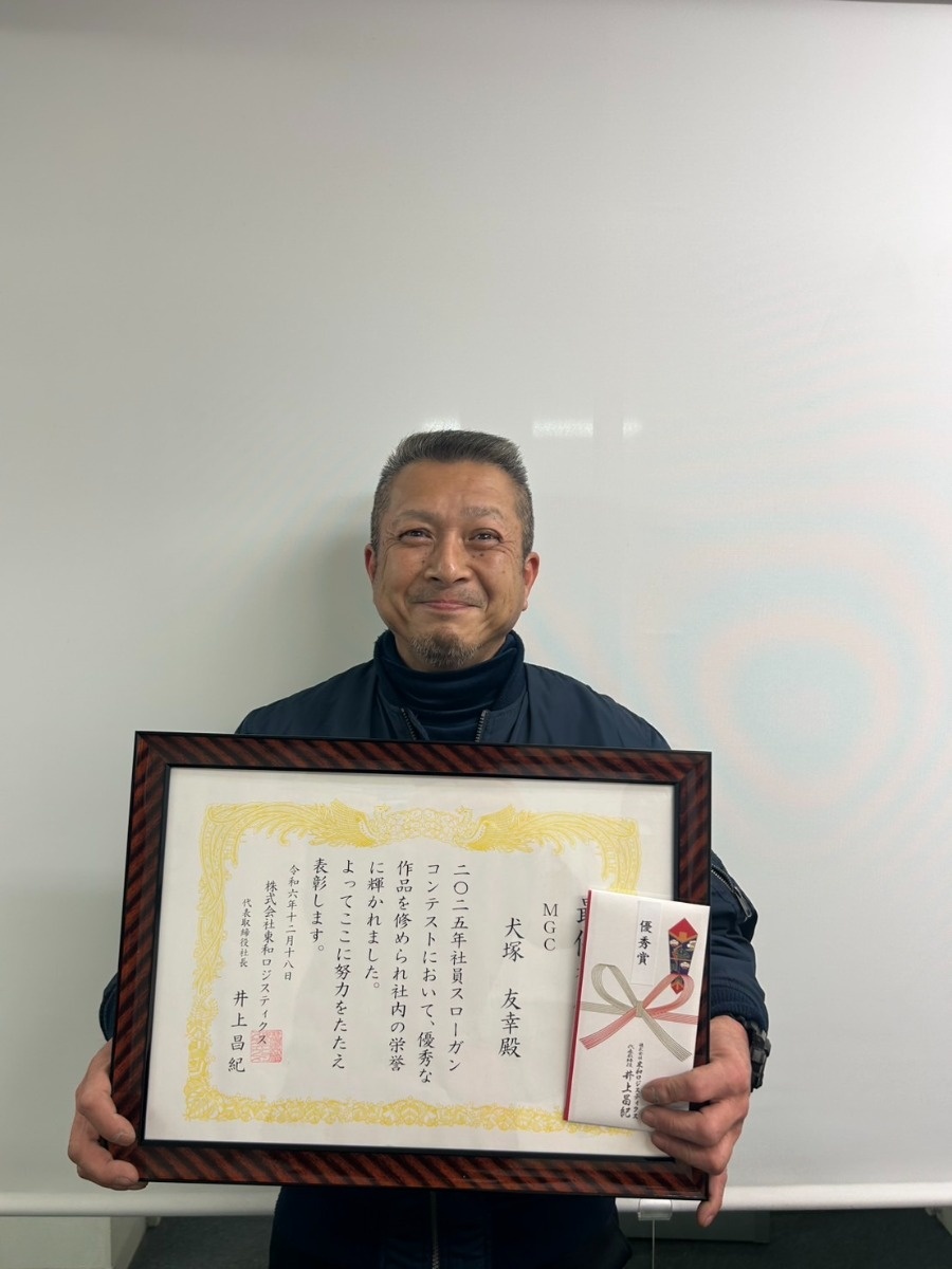 例年、社員はもちろん、協力会社の社員さんも募ってエントリーをしてもらい、2025年は協力会社の社員さんが選ばれました。全員投票でダントツでの受賞です。犬塚さん!おめでとうございます!
