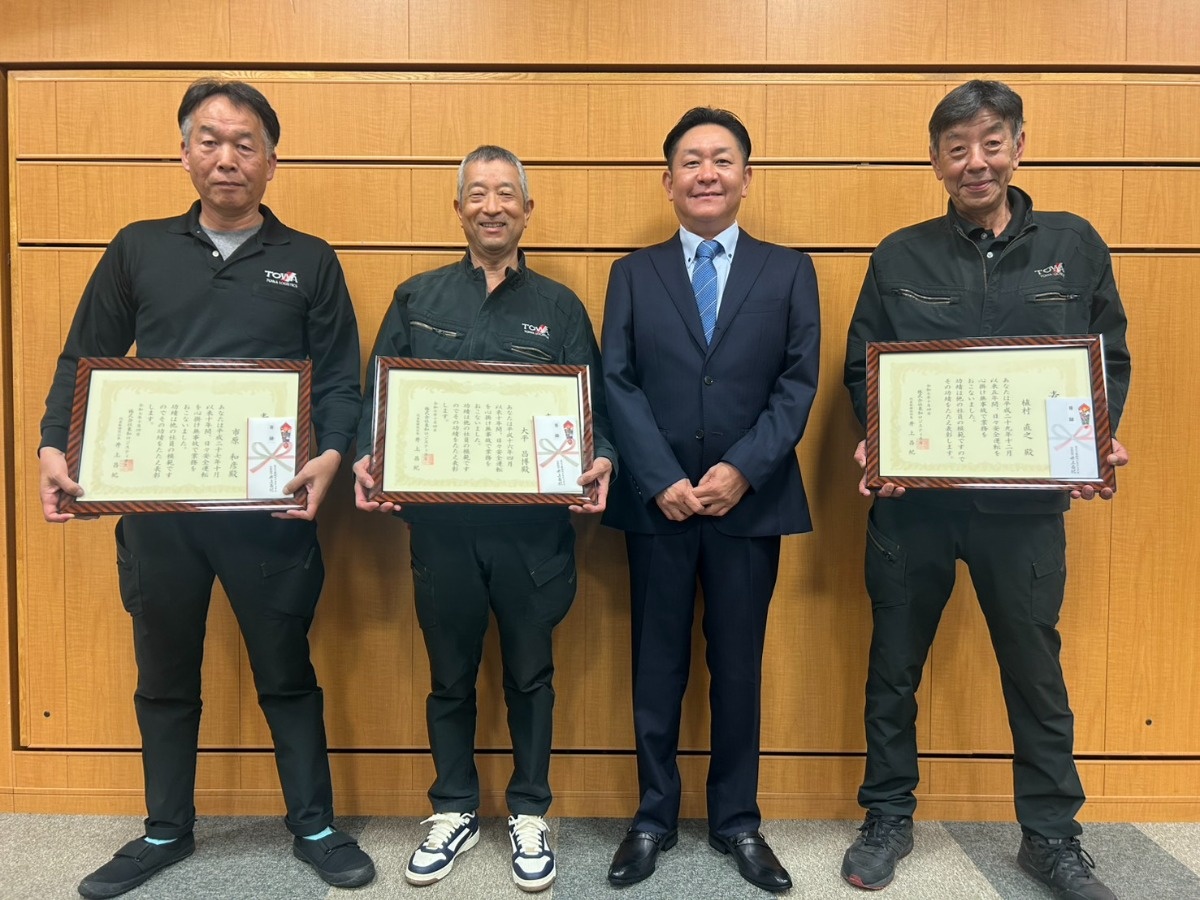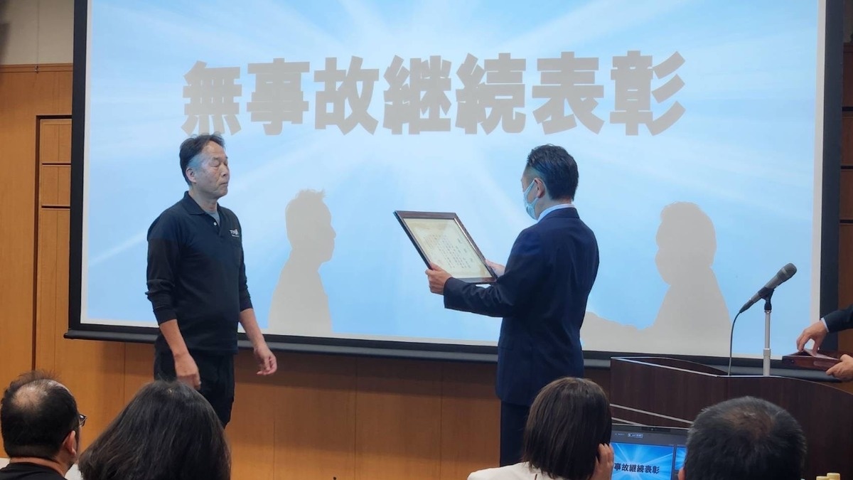 今回は交通無事故連続記録達成者、10年継続2名、5年継続2名の方々の表彰を行いました。